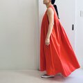 素材は透け感の少ないコットンテンセルを使用しています。お色はパッと目を惹くオレンジです。