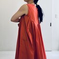 デザインは肩幅やバストサイズをコンパクトにして、裾に向かって広がるAラインシルエットになっています。バスト辺りで切り替えてたっぷりタックを入れました。左脇にファスナー開きがあり、脱ぎ着も楽になっています。