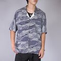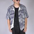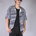 着物リメイク スナップシャツ メンズML スナップボタン 正絹着物アップサイクル オープンカラーシャツ リラックスフィットM