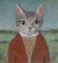 ちょっと小柄なねこの子。朱色のジャケットに