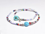 素材:キングマンターコイズ、ガラス、カレンシルバー、シルバー、ターコイズ、ロウビキ紐