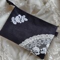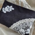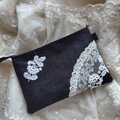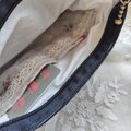 タイプの違うアンティークレースを組み合わせて丁寧に縫い付けています。