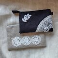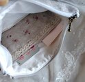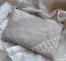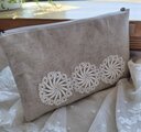 ナチュラルリネンにアンティークレースのファスナーポーチです。