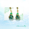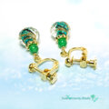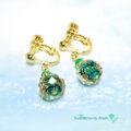 周囲を覆うクリアガラスには繊細なカットが施され、光を受けてきらめく美しいとんぼ玉を主役にしたイヤリングです。
