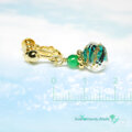 エメラルドグリーンをベースに、なめらかに走るゴールドとブラックのライン。