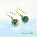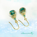 周囲を覆うクリアガラスには繊細なカットが施され、光を受けてきらめく美しいとんぼ玉を主役にしたピアスです。