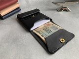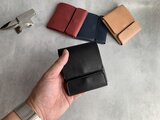 「選べる革9色」&「お好みのステッチ12色」&「名前刻印」で世界で一つだけの薄型ミニマル財布をお作りいたします。左利き用もご用意しました。