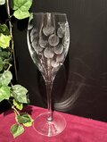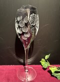 美しいフォルムのグラスに葡萄の葉と実を大胆でモダンな感じでのせました。ワインや、特にシャンパン系を注ぐと、きめ細かい泡が美しく立ち上り、香りを逃しません。