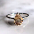 しずく型ゴールデンスキャボライトのファセットカットルースをひと粒用いた、シンプルなシルバーリング。