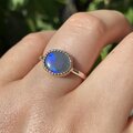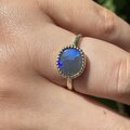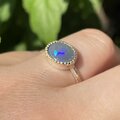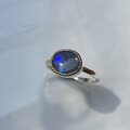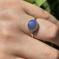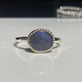 ブラック オパール 1.39ct オーバル ミル打ち留め K18とシルバー925 コンビリング