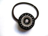 ビジューとパールのヘアゴム(ダイヤビーズ・黒)です。