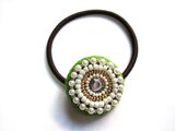 ビジューとパールのヘアゴム(黄緑色)です。