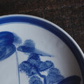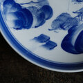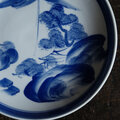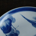 鍋の具材を盛り付けたくなる◆山水楼閣風景の絵。瀬戸焼 染付大皿 骨董・antiques 大正~昭和初期