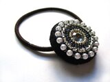 素材:特小・丸大ビーズ、合成皮、ヘアゴム、ビジュー、パールビーズ