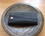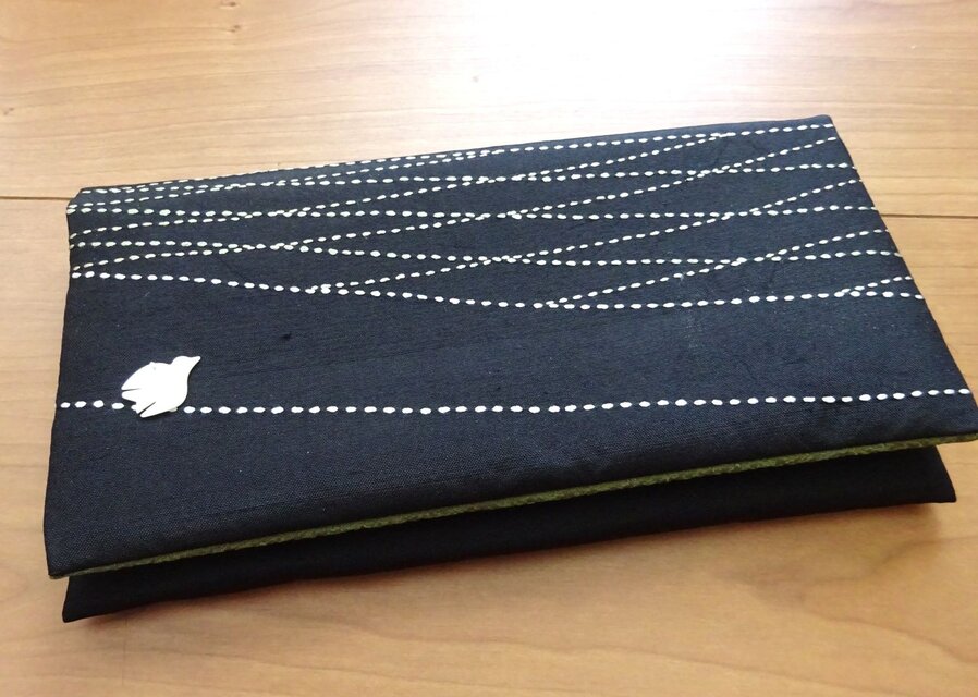 刺し子のある黒地の大島紬から仕立てたお懐紙入れです。
