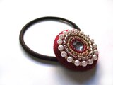 素材:特小・丸大ビーズ、合成皮、ヘアゴム、ビジュー、パールビーズ
