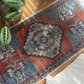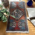約50×96cm、使いやすいサイズ感のトルコヴィンテージラグ。サイドの縁取りも当時のオリジナルのまま残されており、ヴィンテージらしい素朴な魅力が感じられる一枚です。