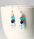 ブルーアイアゲートとビーズのピアスイヤリング2246