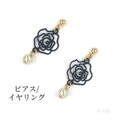 【小さな薔薇のピアス ネイビー】イヤリング プレゼント ギフトラッピング プチギフト