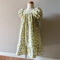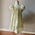 ☆使用しているのはハリのあるコットンツイル。お袖はたっぷりと空気を含んだ様に膨らんだパフスリーブで、身頃から裾まで自然な広がりがあります。