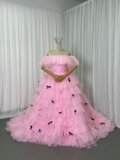 カラードレス チェリーピンク オフショルダー もこもこドレス リボン 花嫁 可愛い