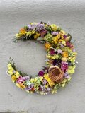 母の日の贈り物に鮮やかで可愛いお色目の、贅沢なリースを作りました。