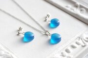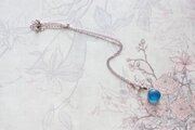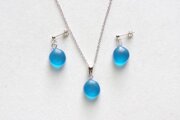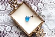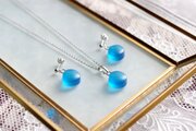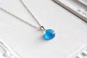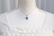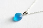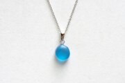 すりガラスのような柔らかな青色の風合いと、ほのかな透明感が美しいペンダント。