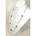 きらきらと輝く多面カットの小粒のラブラドタイトを貝と真珠の間に挟む事で、動きがスムーズなネックレスになっています。