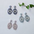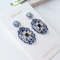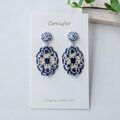 バイカラーオーバルモチーフ イヤリングorピアス(ブルー&オフホワイト)/No.25-0701