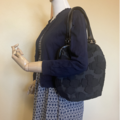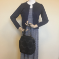 黒のハンドルは肩にも掛けられる絶妙な長さ シルバーのカンで仕上げました。