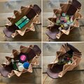 シルエットもわりと自由がききますのでギャザーを深めに絞ると細くもなり小物入れオヤツ入れコスメポーチなどお好みの使い方でお楽しみいただけます。