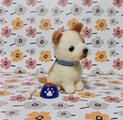 羊毛フェルト製の犬のぬいぐるみ、手のひらサイズで可愛いデザイン。