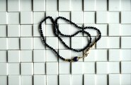ブラックサファイアにチベッタンビーズを1粒、の大人シックなネックレス