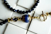 一か所だけアクセントになる場所をと考え、長さ1cmほどのラピスラズリのチベッタンビーズを留め金付近に配してみました。