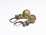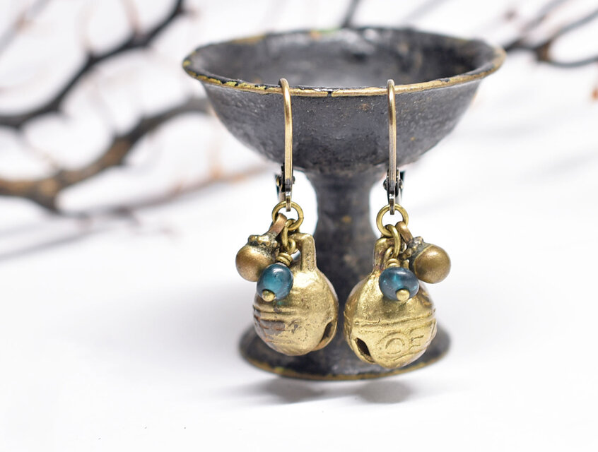 デッドストックベルと民族鈴、インディゴブルービーズを繋いだピアスです。