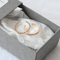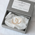 片耳にレイヤードスタイルでお使いいただいたり左右わけてお使いいただくなどアレンジを楽しんでください。写真のボックスに入れてお届けします。