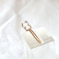 アーム部分は小気味よく小さなさなドットが連なるチャーミングなデザイン。しっかりと石を掴む太爪をあわせてイメージのギャップを楽しむデザインにしています。