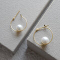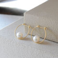 このピアスは18金の繊細なフープにアコヤ真珠を一粒だけ添えた、