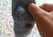 内側は羊毛フェルトできれいな明るめの水色です。男性にもおすすめの色合いです。