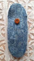 ブロックプリントの生地が羊毛フェルトと合わさることで、ほんのりと柄が浮き立ち上品な雰囲気の眼鏡ケースです。そして素材のくしゅくゅとした感じもとても可愛らしいんです。