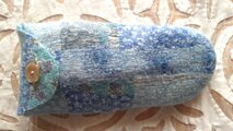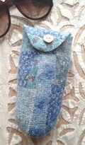 羊毛フェルトとインド綿のブロックプリントの生地を使って、フェルトの眼鏡ケースを作りました。