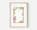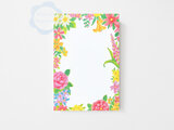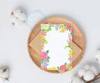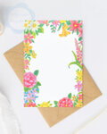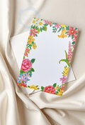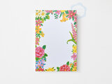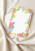 バラや百合などのカラフルな花束でフレームを描いた、オイルパステル画のポストカード「3枚セット」です