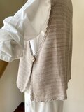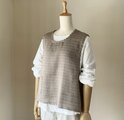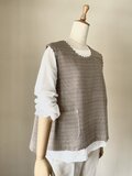 ラミー(苧麻)は繊維が長くコシと光沢があり、シャリ感が強いのが特徴です。その性質を利用して織ったので、光沢があって身体の線を拾わないベストが出来ました。