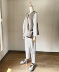 袖ぐりが約72cmもあるので、ドルマン袖のような広い袖ぐりのブラウス・ワンピースやプルオーバーにも合わせられるベストです。