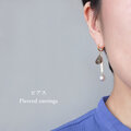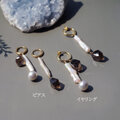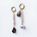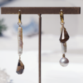 スティック真珠とスモーキークォーツ、貝パールのアシンメトリーピアス ~冬木立(ふゆこだち)