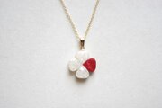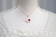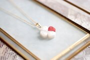 こっくりとした光沢のあるボルドーと真珠色の組み合わせが大人っぽいペンダント。