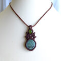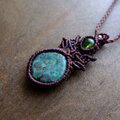エメラルド(ブラジル産)・ ペリドット(アメリカ産)マクラメ編みペンダントネックレス 男女兼用可アクセサリー 3605