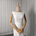 ウェディングドレス ノースリーブ 細見えシルエット 美しいバックレース 華やかなトレーン 結婚式