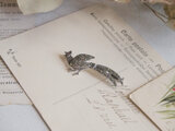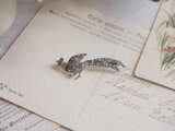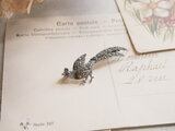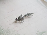 赤い目をして長い尾をたなびかせる、キジのような鳥のブローチです。