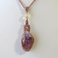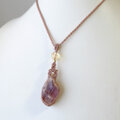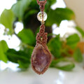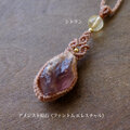 アメジスト ファントム エレスチャル原石 ・天然シトリン(11月誕生石)マクラメ編みペンダントネックレス 3799